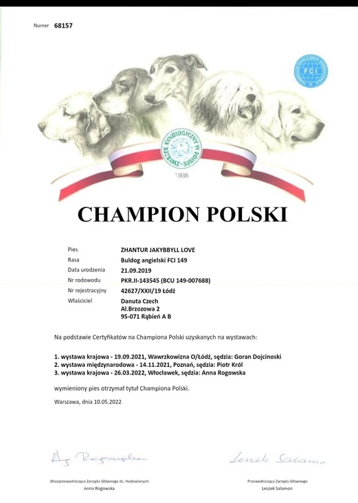 Pies o doskonalym rodowodzie jest juz w naszej hodowli