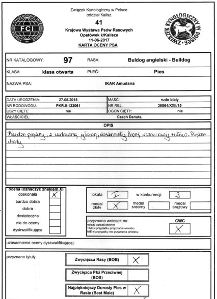 IV ZIMOWA KRAJOOWA WYSTAWA - CHOCEN 12-13.03.2016 IKRA AMUDARIA 1 Miejsce /3 KLASA MLODZIEZY : ZWYCIESCA MLODZIEZY : NAJLEPSZY JUNIR Sedzia: ALEKSANDER WASZKOESKI